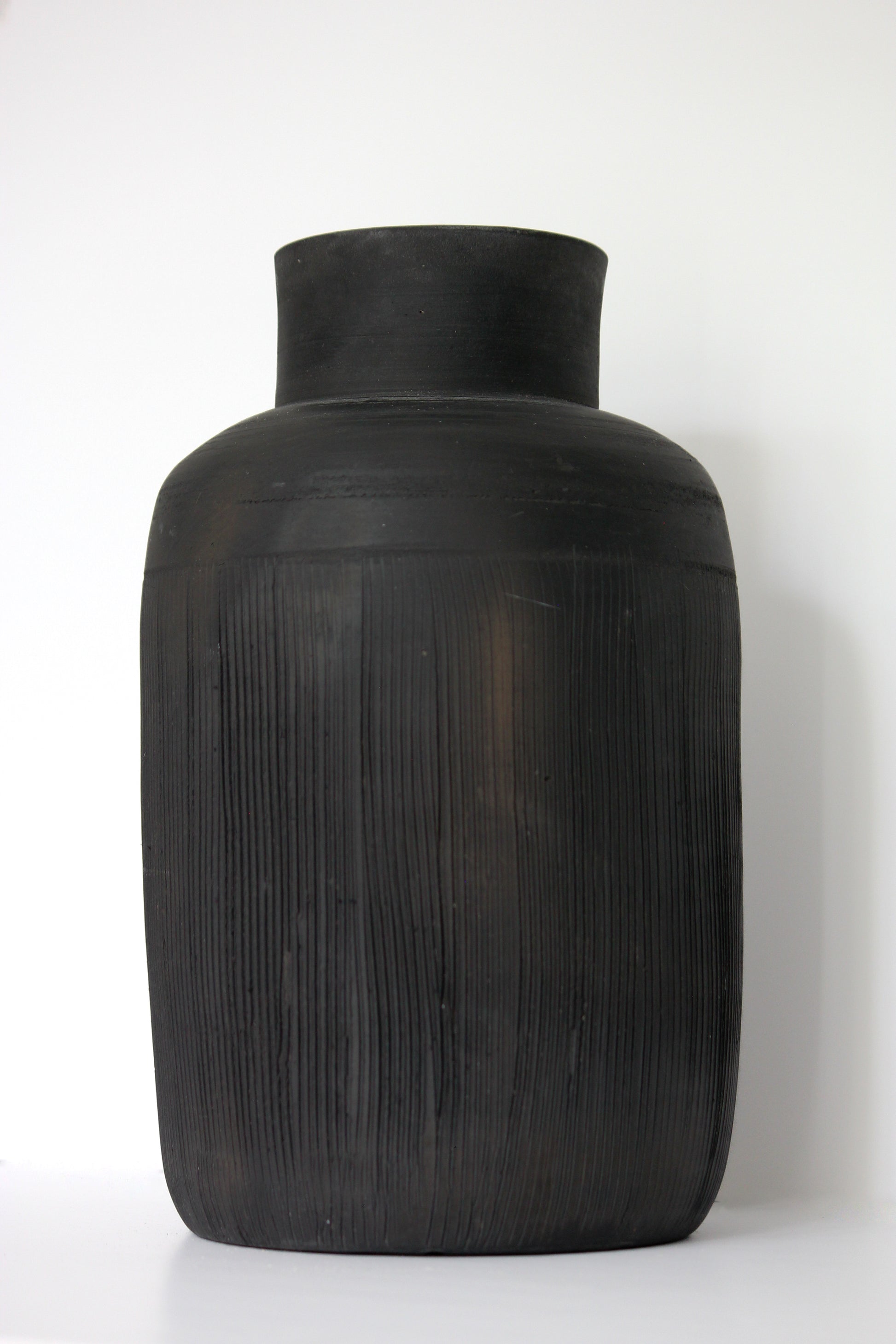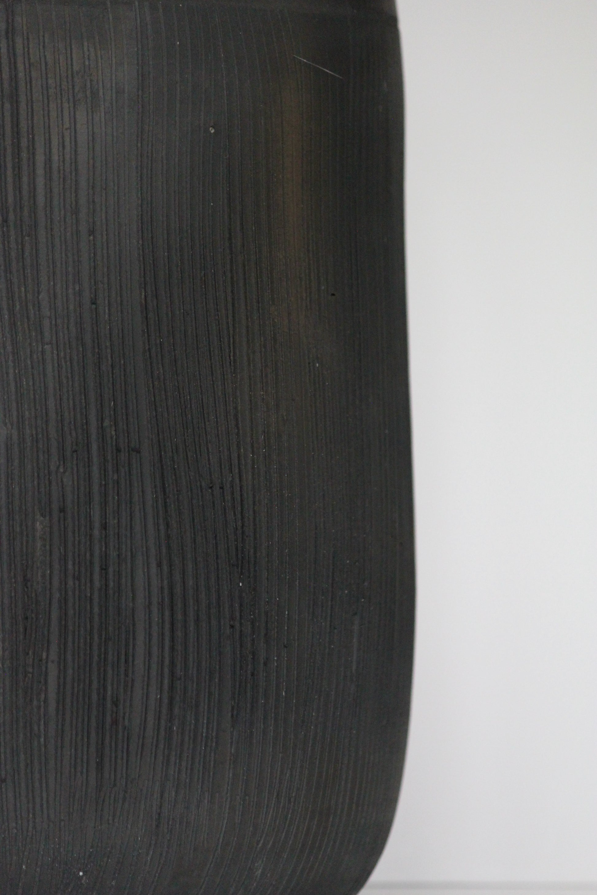 The Classic '09 pot is perfect as a centerpiece for a table or as an accent piece at your home's entrance. Its design is inspired by the sturdy and enduring shapes found in nature, with a sleek black finish and fine, straight-line engravings that mimic the grooves in weathered rocks. This pot brings the timeless elegance of natural stone indoors, making any space feel more connected to the outdoors.