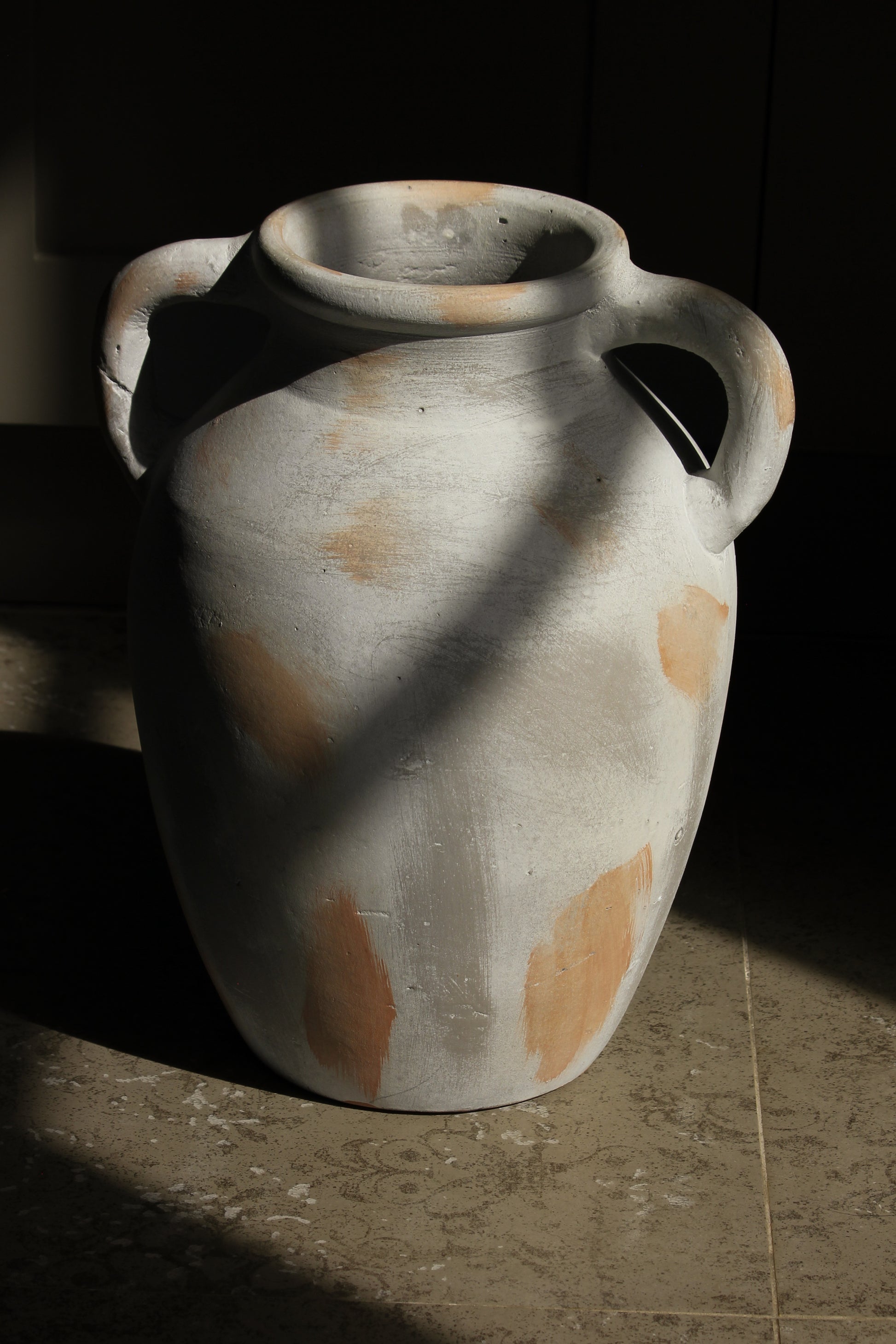 This pot is inspired by the windswept dunes of the desert, where the soft white sand meets the subtle hues of grey and peach in the early morning light. The markings on the pot capture the natural patterns formed by the shifting landscape, while the two handles evoke the practical design of vessels used in desert crossings. The Dune Ridge Pot brings the serene and timeless beauty of these arid landscapes into your home.